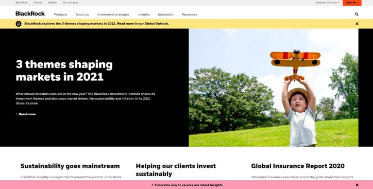 世界最大の資産運用会社。1988年に8人の発起人によって設立された。2020年9月末時点で、運用資産残高は7.81兆ドル(約824兆円)。世界の主要な金融機関、年金基金、財団、公的機関、個人投資家に幅広いサービスや商品を提供している。参考:BlackRock
