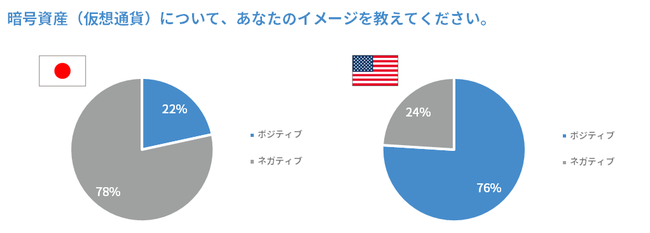 bitFlyerが行ったアンケート調査の結果。米国ではポジティブと回答する割合が76%に上るなど、高いことがわかる 引用元:prtimes.jp
