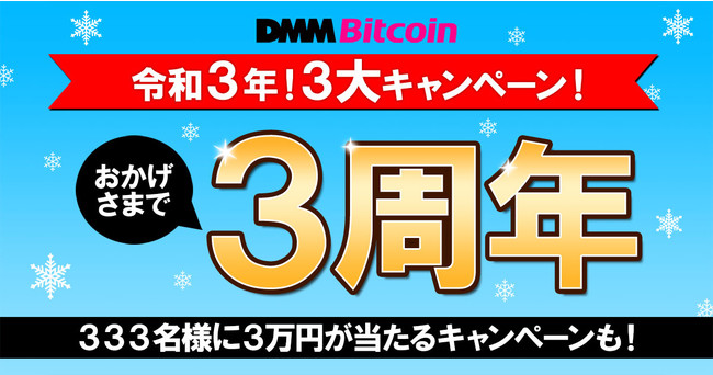 - 暗号資産取引所DMM Bitcoinが1月8日、サービス開始3周年を記念して、取引高キャンペーンなど3つのキャンペーンを同時開催することを発表した