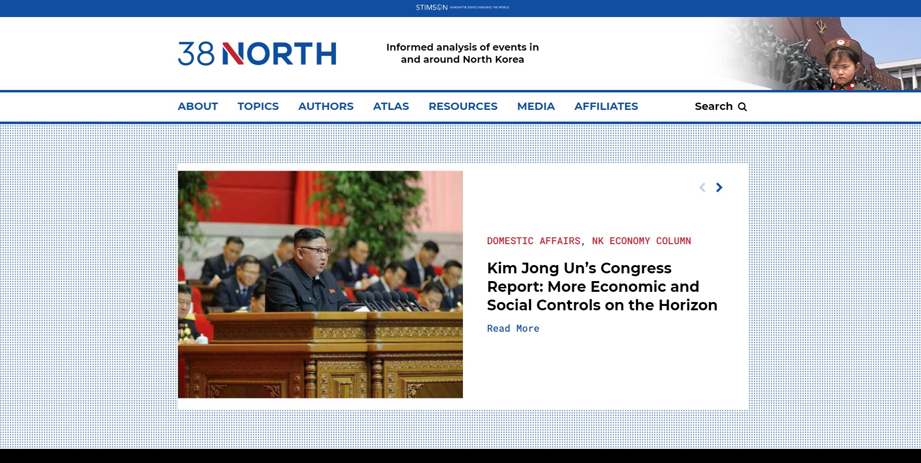 - 米ジョンズ・ホプキンス大のシンクタンクである米韓研究所が2010年から運営する北朝鮮情勢の分析サイト。各分野の専門家と連携し、衛星写真などを分析して核実験や大量破壊兵器の開発に関する情報を公開している。北朝鮮の内政や外交に関する情報も掲載する。参考:日本経済新聞