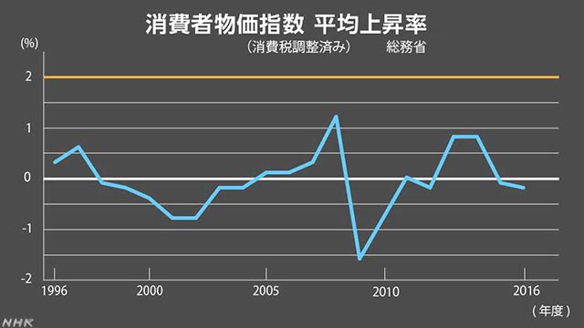 - 2%の物価安定目標とは、日本銀行が2013年1月に定めた、消費者物価指数の前年比上昇率を2%とする金融政策における目標。バブル崩壊以降、物の値段が上がらないデフレが続く中、経済活動や国民経済の安定化を図る狙いがある。参考:日本銀行