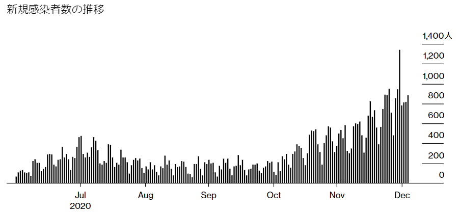 東京都の新規感染者数 引用元:Bloomberg