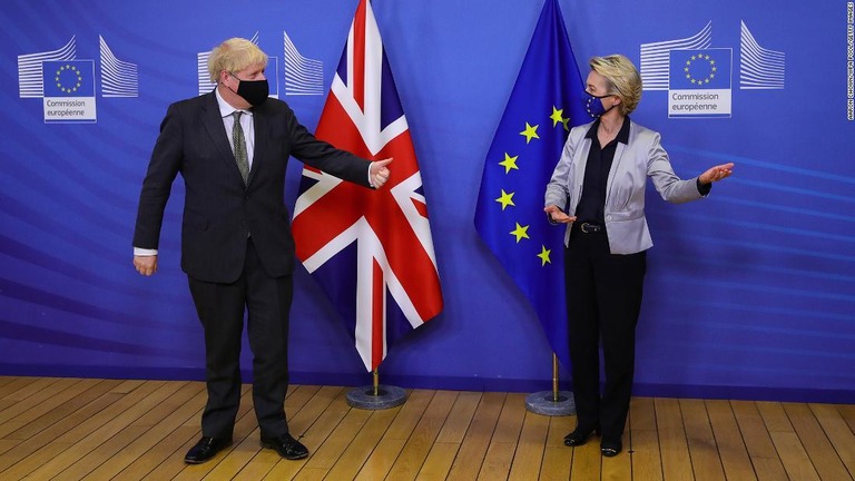 ジョンソン英首相(左)と欧州委員会のフォンデアライエン委員長