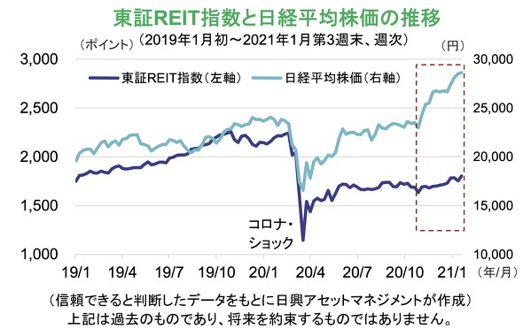 株式市場に比べ、回復が遅れるJ-REIT市場