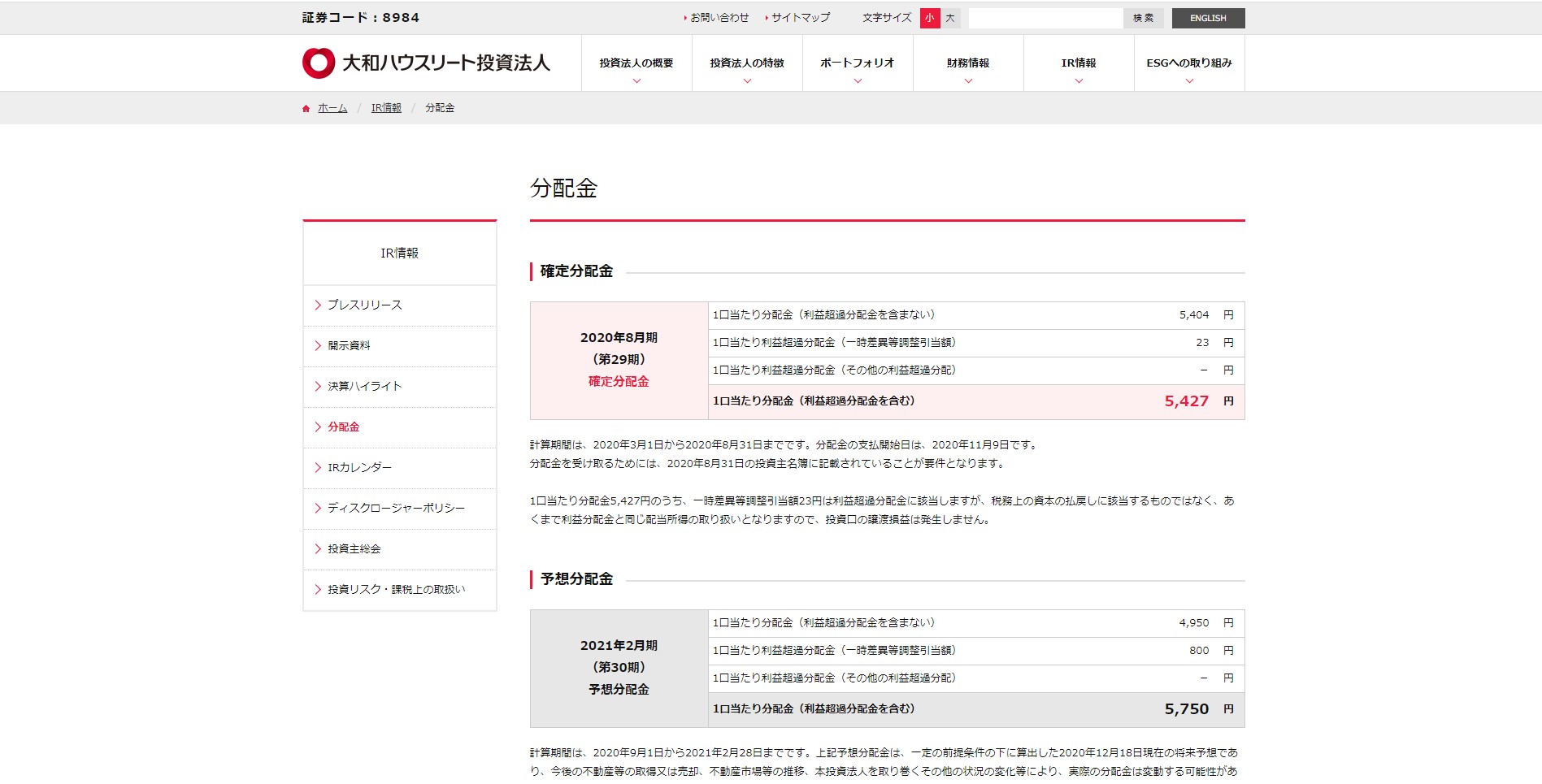 多くのJ-REITの分配金利回りは約3%~6%で、株式投資よりも高配当なものが多いという特徴がある。また、株式投資の場合、上場している会社は3,000社以上あるが、J-REITは2020年5月現在で63法人しかなく、銘柄を選択しやすい点もメリットとして挙げられる。