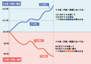 通貨を安いレートで買い、高いレートで決済することで利益を獲得していきます。