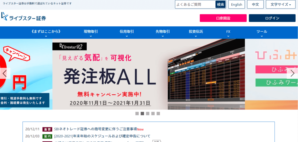 2019年12月から信用取引手数料完全無料化をはじめた「ライブスター証券」は、取引手数料をトコトン下げたいデイトレーダーにとってチェックしておきたい証券会社のひとつです。
