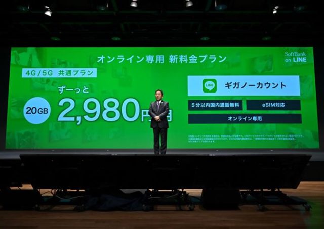 発表した新料金プランのうち、LINEを活用した目玉のプランはどうなっているのか。プレスリリースの発表によると、毎月 20GB のデータ容量と、コミュニケーションアプリ「LINE」がデータ容量を消費せずに、使い放題となる「LINE がギガノーカウント」が付いた画期的なプラン内容となっている。4Gと、次世代通信規格(5G) 共通で、料金は月額 2,980 円。5 分以内の国内通話が何度でも無料で、月額料金は永年定額という。eSIM に も対応する予定としている。